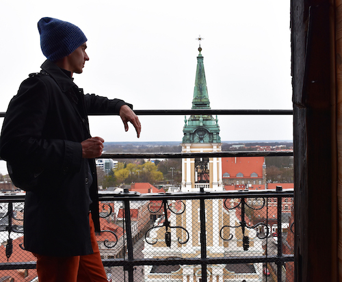 Michal in his home town, Torunń, Poland - at the top of the historic clock tower in the old quarter.
