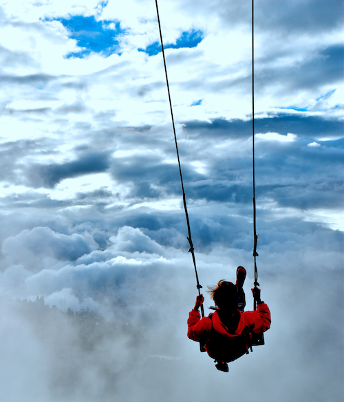 "The Swing at the End of the World: I took this photo while backpacking around the world. A fellow traveler I met along the way, Lloyd, is swinging care-free on a giant swing, set on top of a mountain in Ecuador. The clouds down in the valley give the appearance he's swinging above the clouds, up in the heavens. It's the ultimate image of what I feel life should be about: joy, adventure and freedom. If I ever decide to share my complete life story with the world, this will be the book cover."