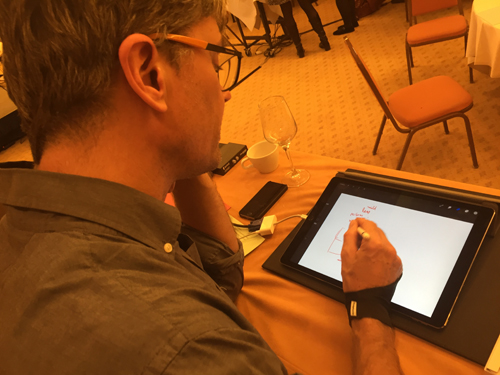 But our secret ingredient was to use a cartoonist to make everyone laugh. Floris Oudshoorn is a gem. A Dutch cartoonist, who is fluent in English, he recapped the main points with some of his very witty digital sketches.