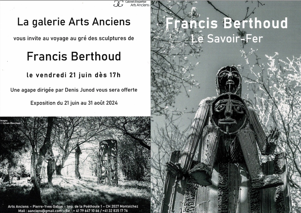 The exhibition of Francis Berthoud's extraordinary sculptures will commence on 21 June 2024 from 17h in our gallery. We look forward to seeing you there and sharing an aperitif with you on the opening day.