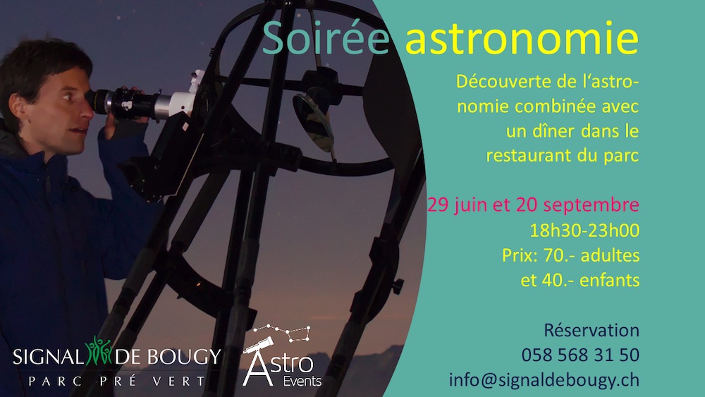 http://www.signaldebougy.ch/sites/default/files/astroabend_flyer_bougy_2019_a5_screen.pdf Astronomy evening with dinner, in French.