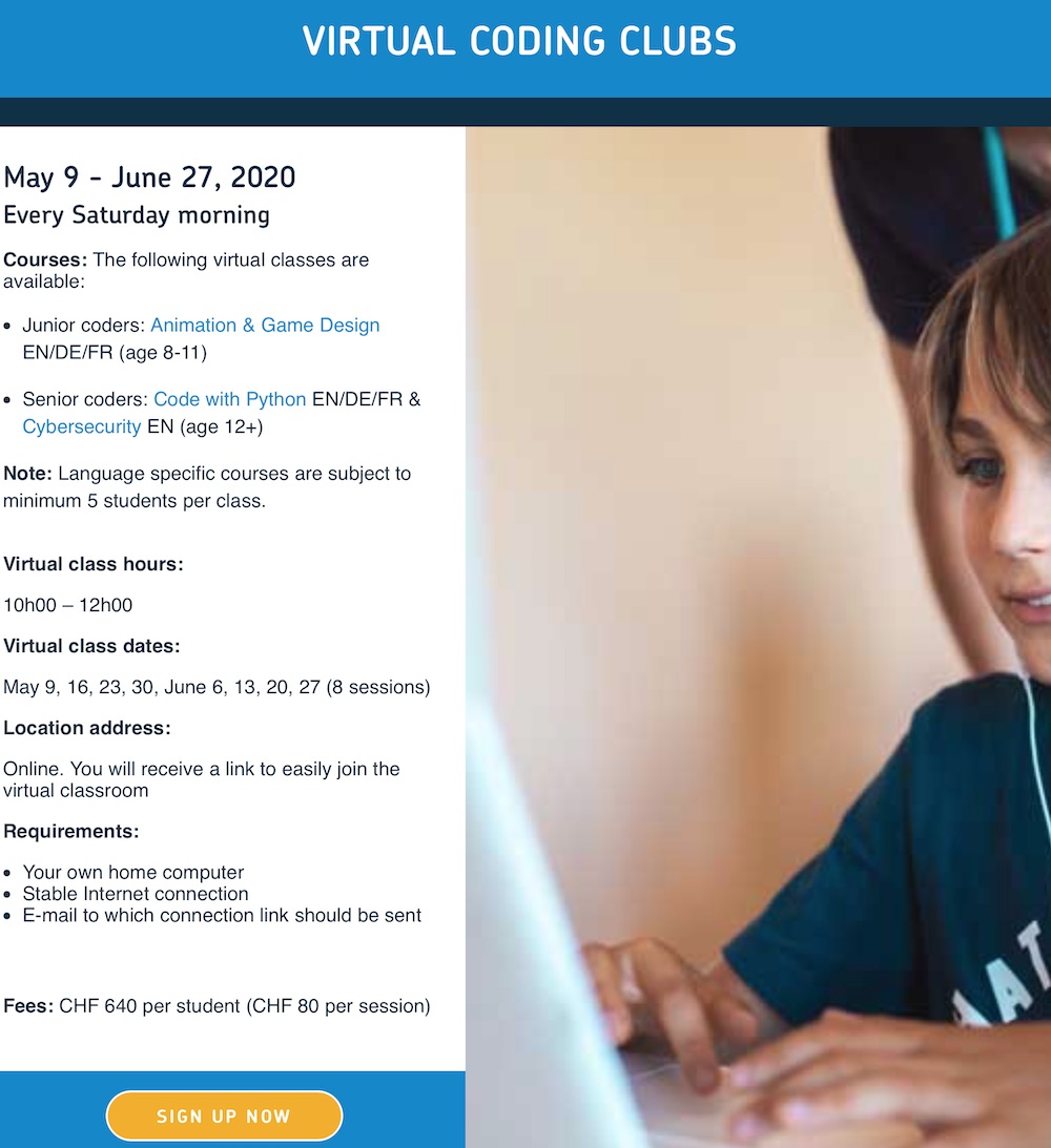 https://techsparkacademy.ch/camps/virtual-coding-club-may-june-2020/ Virtual Coding Clubs |