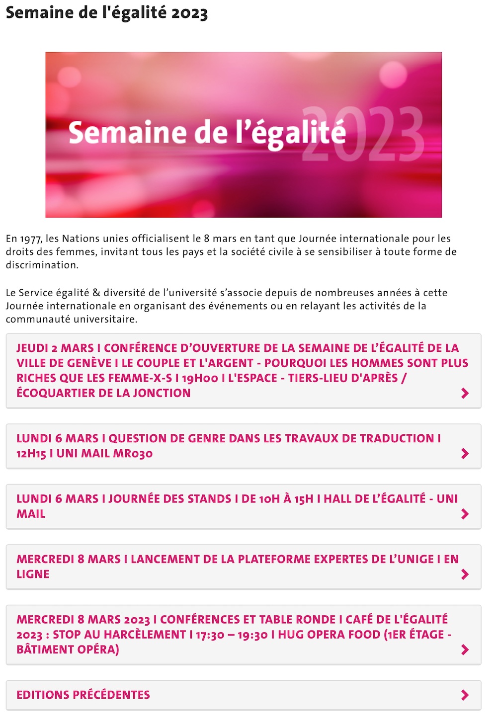 | UNIGE: SEMAINE DE L'EGALITE | |||||||