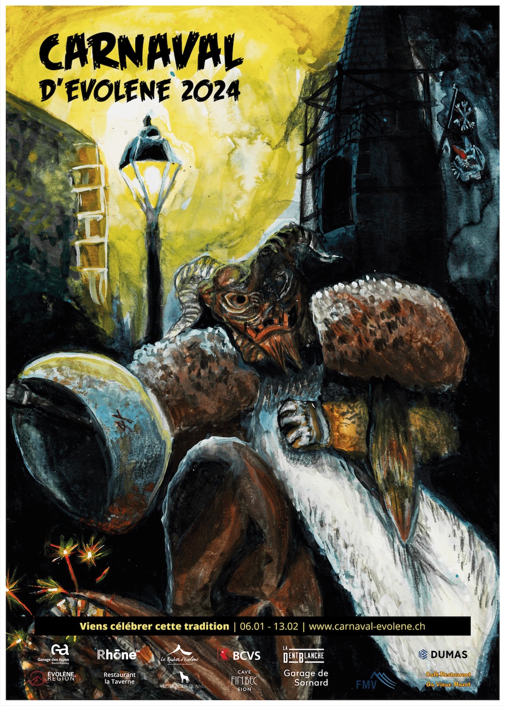 6 January through 13 February 2024 https://carnaval-evolene.ch/wp-content/uploads/2024/01/Carnet-de-fete-Carnaval-Evolene-2024.pdf |