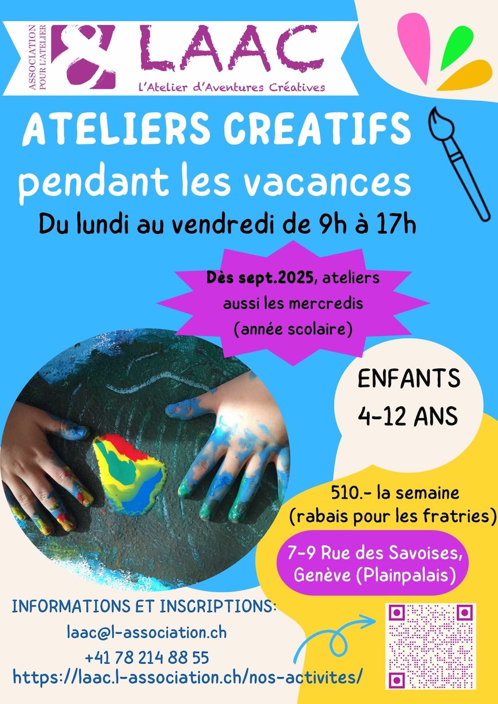 https://laac.l-association.ch/nos-activites Upcoming holiday camps (flyer above) 22-25 April 2025: age 13-16 Check out our article here: https://www.knowitall.ch/local-news/leisure/3253-l-atelier-d-aventures-creatives-enables-children-to-express-themselves