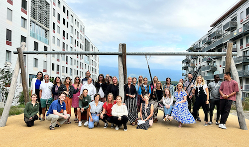 Teachers and staff gather at the start of the 2024-2025 school year in Meyrin's Ecoquartier Les Vergers, where the school is located.
