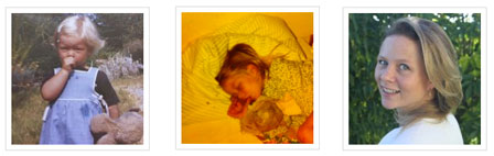 Valérie with B at the ages of 3 and 7, and later as she is now