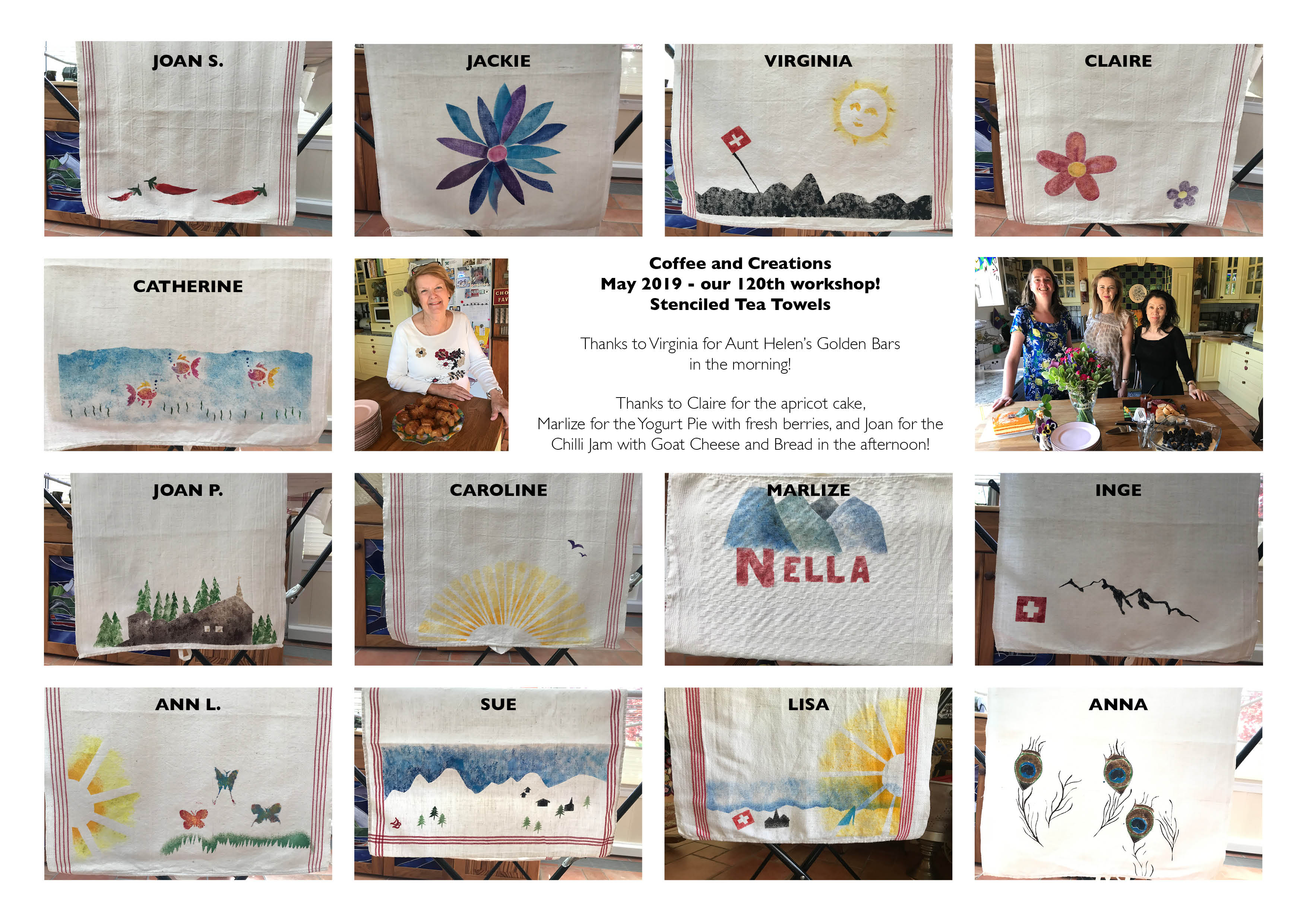 Workshop includes: surprise project, coffee, tea, cold drink, a home-made treat, conversation in English, parking, home setting.