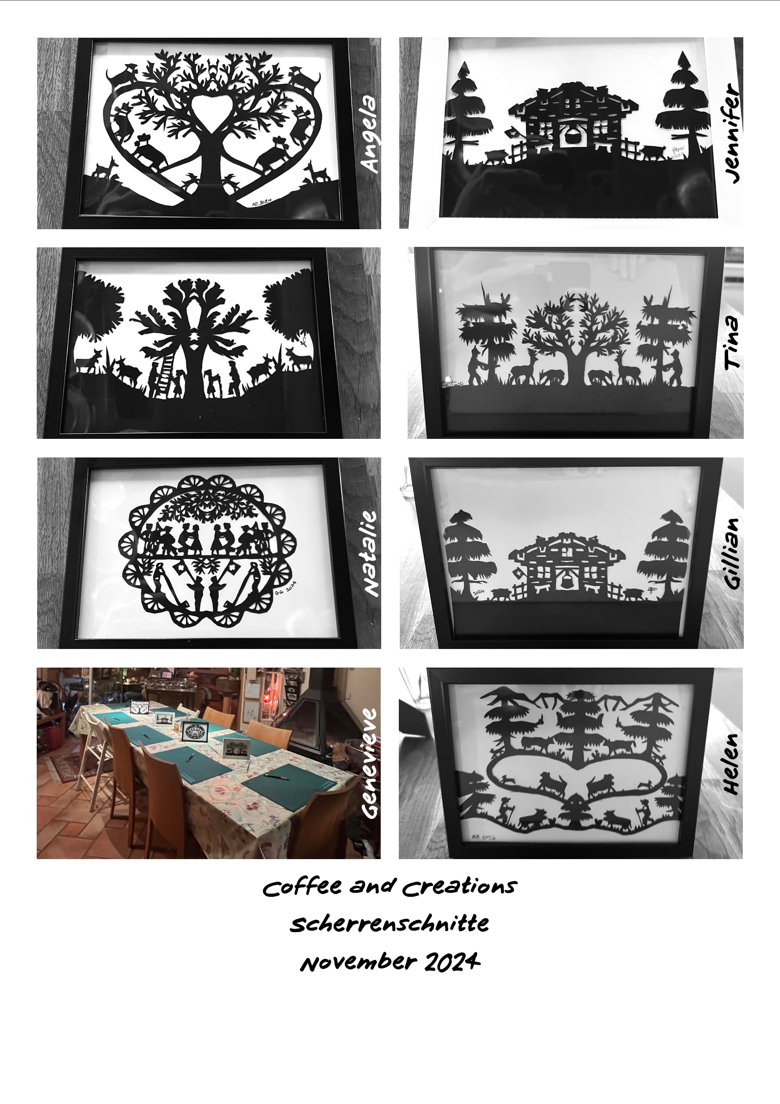 Cost Fr. 40.-/person, Includes the special black coated decoupage paper, a frame, a pattern, coffee/tea/drink and a treat. The special decoupage scissors and scalpels, cutting mat, and instruction will be on hand.