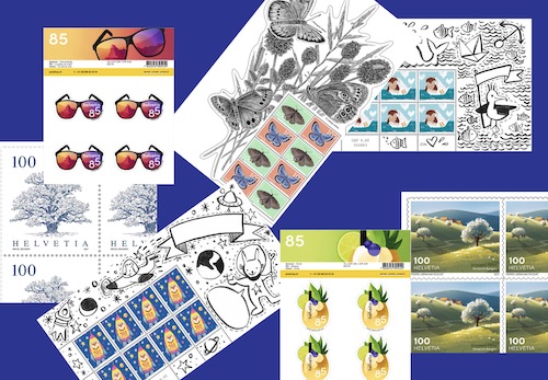 A fresh take on stamps: everyone will warm to these amusing designs. After all, who doesn’t want to be able to send some summer vibes by mail? Evoking a summer atmosphere through simple items – that was the design brief given to three artists for these special stamps. “Sunglasses”, “Drink”, “Ice cream” and “Watermelon”, some classic elements of summer, were picked as the themes. Swiss Post employees then voted on the three proposed sets of designs. The designer Patrick Oberholzer from Winterthur emerged as the winner. To make the designs as eye-catching as possible, he used a warm, powerful and fresh range of colours with a clear use of form.
