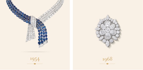 Left: Collaret necklace, 1954. Platinum, sapphires, diamonds.