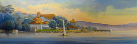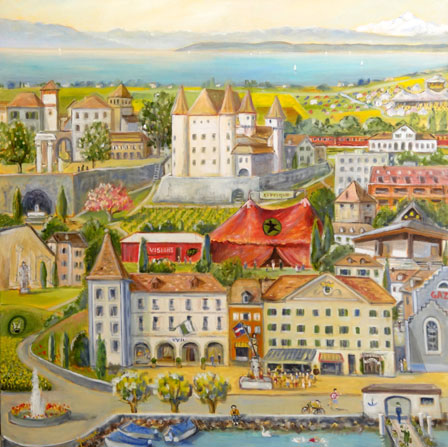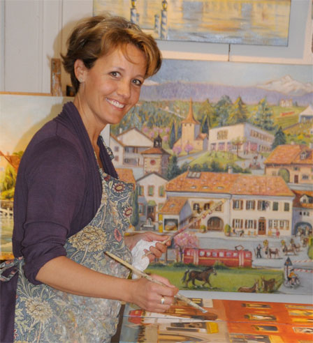 Artiswiss is a new type of art gallery, specializing in paintings of the Lac Léman region, from Geneva to Lavaux, and other neighboring areas (Valais, Grisons). Set up a year ago by local artist, Rita Mancesti, Artiswiss is located in Coppet, Vaud, under the ancient arcade at 28b Grand Rue. If you step into the gallery any day between 9h30 and 13h on a Tuesday to Saturday, don’t miss the chance to meet Rita in person, who will be delighted to explain her oil paintings to you – in French, English, German or Italian. Unlike many artists who like to work alone, Rita actually creates her paintings at the gallery, so you can watch her whilst she works in her own studio/atelier. Indeed you don't even need to step into the gallery - you can see her work unfold before your very eyes through the gallery window!