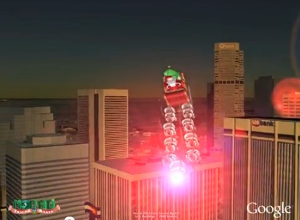 Note: The website also has delightful stories about Santa, full explanations about how they do it (NORAD uses four high-tech systems to track Santa - radar, satellites, Santa Cams and jet fighter aircraft), a countdown from now until Christmas eve, videos, games, and songs.